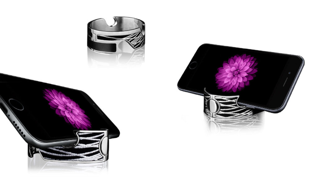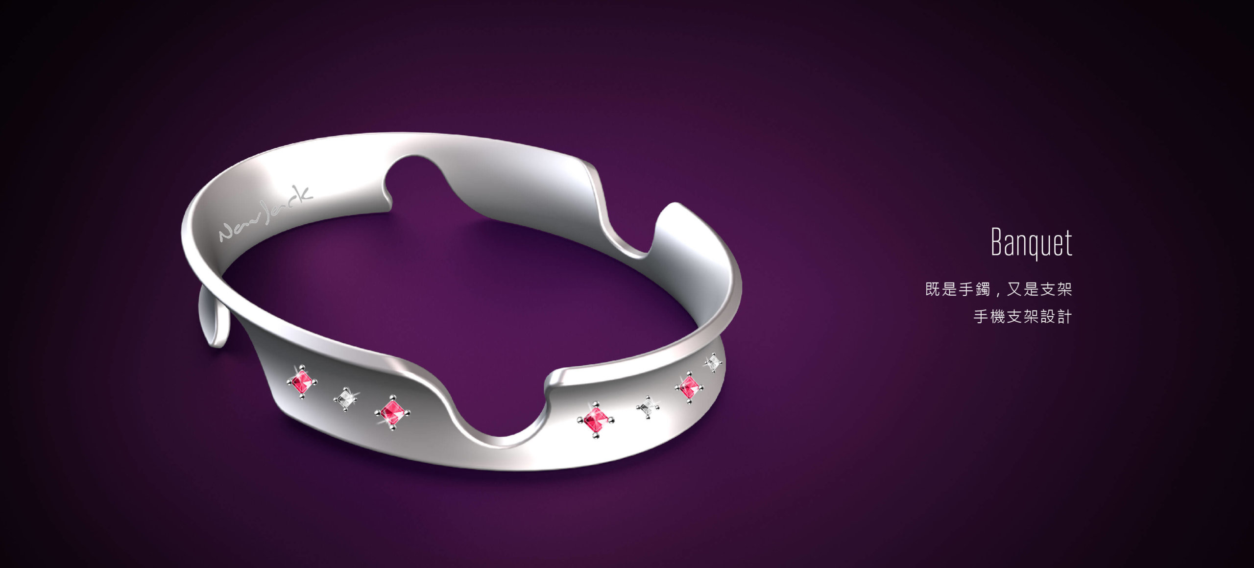 業主希望彰顯品牌精神 , 意圖將奢華的生活概念擴展至整個 3C 產品的周邊 , 故我們企劃了這個專案 . 經過蒐集資料與研究發現 : < 極高的黏著度 > 是最大的特徵 , 手機對於現代人 , 等同於空氣般的存在 . 隨時有觀看影片 , 使用社群軟體等用途 . 因此我們從 < 飾品 X 3C週邊 X 生活型態> 的概念去思考 , 發展出了這個結合手機支架的手鐲 .