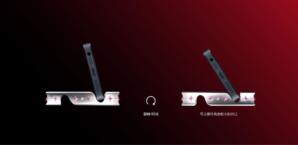 手鐲上有兩組凹槽 , 透過翻轉 , 可以選擇不同的角度 .