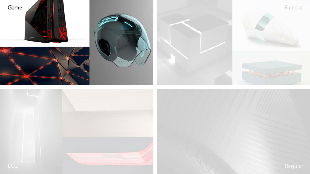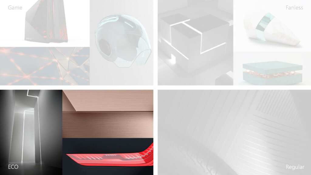 最高階 < Fanless > , 象徵未來 , 類似概念車 . 無風扇 , 完全透過材質散熱 , 使用最新最卓越的材質與技術打造 , 無切割與燈光呈現的限制 . 也會因應前三個系列的市場反應做調整 .